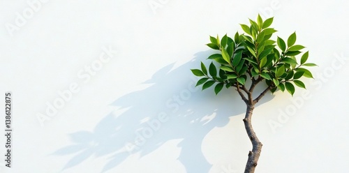 Tangled branches of a small tree against white wall, foliage, botanical