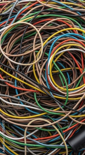 Tangled Multicolored Electrical Wires: A Close-Up of Intertwined Cables