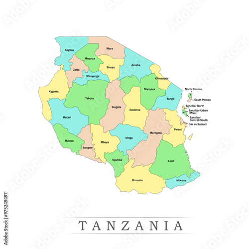 Tanzania administrative divisions. Tanzania map illustration vector.