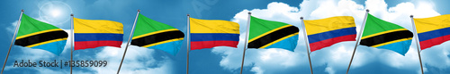 Tanzanian flag with Colombia flag, 3D rendering