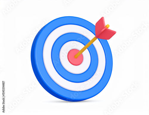 Target arrow success icon. Dart arrow on target dartboard. 3d isolated on white background.dart, challenge, finance, idea, marketing, solution, strategy, success, sport, business, dartboard, plastic,