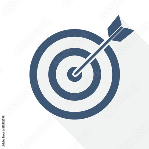 Target vector icon, arrow, center, goal, success concept flat design illustration