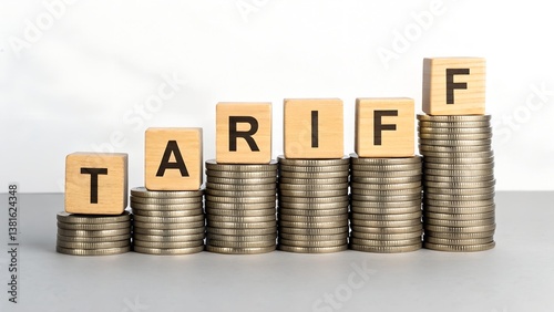 Tariff Impact on Economy Depicted with Stacked Coins and Blocks