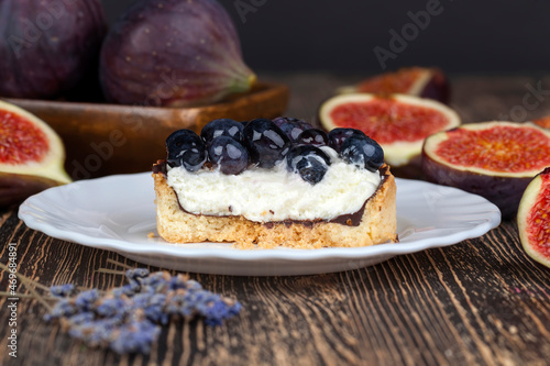 tartlet with cream and blueberries