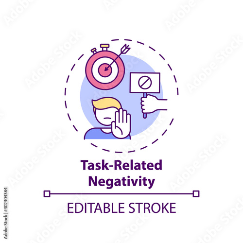 Task-related negativity concept icon. Procrastination reason idea thin line illustration. Negative emotions associated with task. Vector isolated outline RGB color drawing. Editable stroke