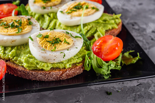 tasty and nutritious avocado sandwich and boiled egg