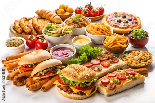Tasty Assorted Fast Food and Vibrant Meal Presentation