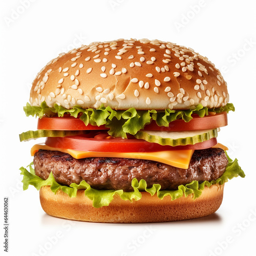 Tasty burger isolated on white background fresh hamburger fast food with beef, vegetables and cheese