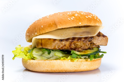 tasty burger with cheese and vegetables