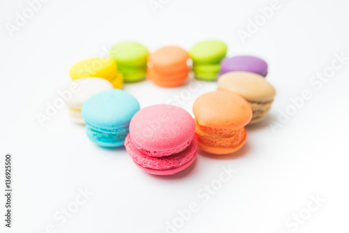 Tasty colorful macaroon on a white background (macaron, macarons, macaroon), Love concept.