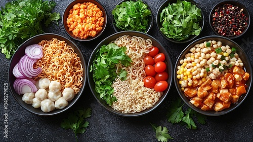 Tasty food preparation kitchen culinary display vibrant ingredients top view healthy eating