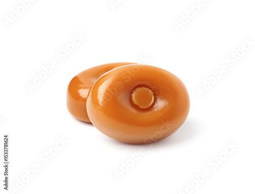 Tasty hard toffee candies isolated on white
