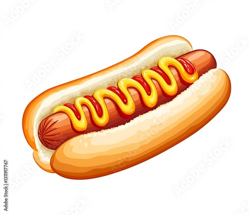 Tasty Hot Dog with Bright Mustard and Ketchup on a Bun Isolated on White Background : Generative AI