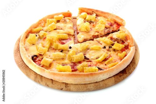 Tasty Italian pizza over white