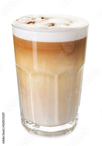 Tasty latte macchiato in glass isolated on white