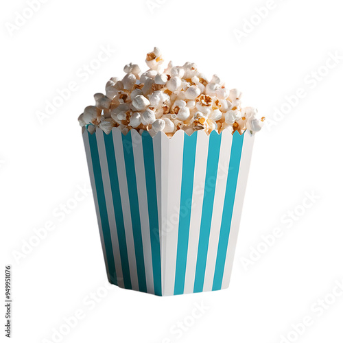 Tasty popcorn in a blue-white striped box isolated on a transparent background by AI generative