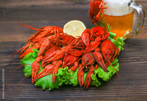 tasty red crayfish on a plate with a light beer