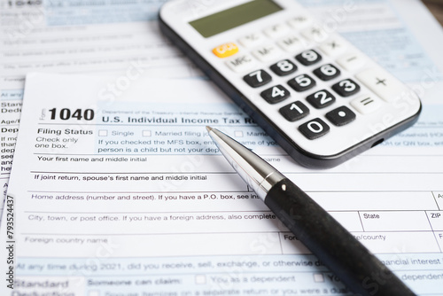 Tax form 1040 U.S. Individual Income Tax Return, business finance concept.