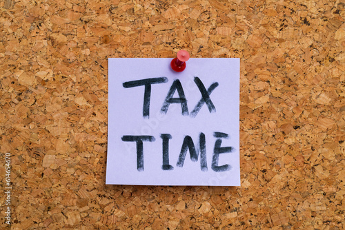 Tax time written on sticky note