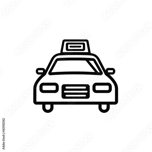 Taxi Cab Vehicle Outlines with Transparent Background, Simple Black Line Icon Design