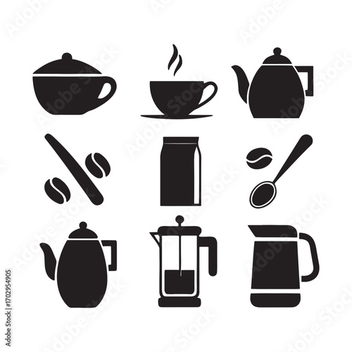 Tea and Coffee Silhouette Icon Set