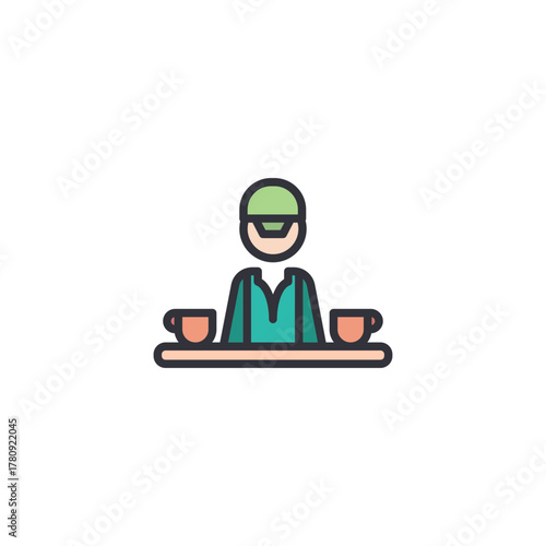 Tea master or server icon brewing tea in ceremony posture, flat pastel color illustration, perfect for traditional beverage culture, hospitality theme vector concept.