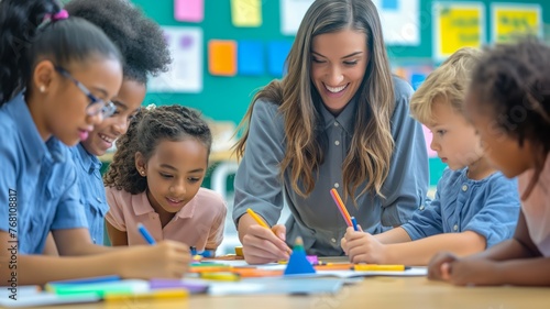 Teacher assisting students with schoolwork