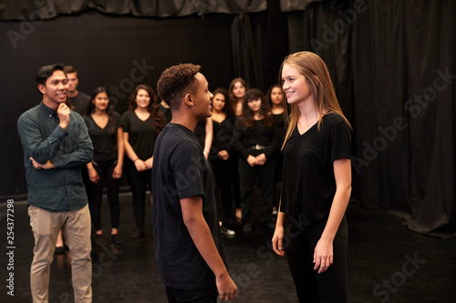 Teacher With Male And Female Drama Students At Performing Arts School In Studio Improvisation Class