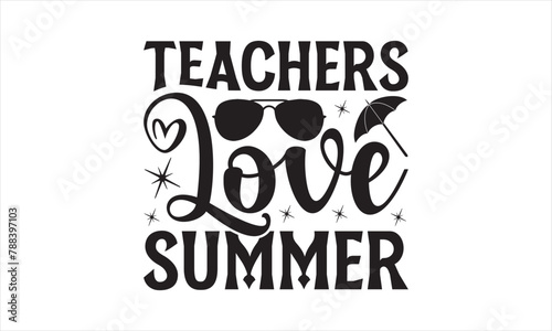 Teachers Love Summer - Summer T- Shirt Design, Editable, This Illustration Can Be Used As A Print On T-Shirts And Bags, Stationary Or As A Poster, Template.
