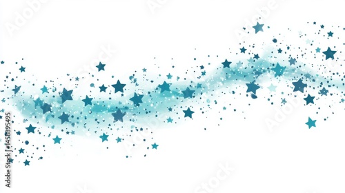Teal Blue Star Sparkles Swirling Wave on White Background