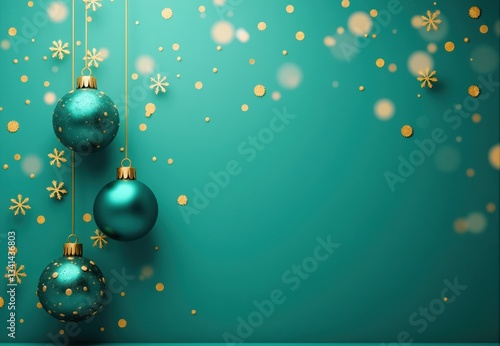 Teal Christmas Ornaments with Gold Accents on Teal Background