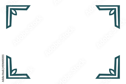 Teal Corners Border Frame with Leaf Design Ornament, Elegant Decorative Elements, Vector Illustration
