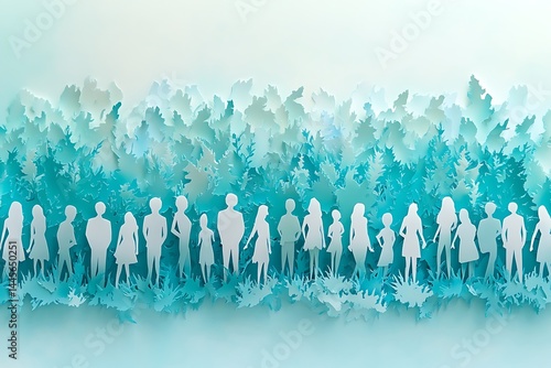 Teal Paper Cutout People Teamwork Harmony Illustration