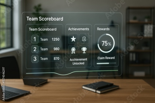 Team Achievement Scoreboard with Rankings, Gamified Rewards, and Progress Tracker on Transparent Interface
