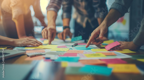 Team brainstorming ideas during the lecture, creative and cooperative, right third copy space