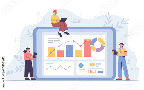 Team Collaborating on Data Analysis and Visualization Using Modern Technology, Analyzing Charts and Graphs for Business Strategy and Growth Insights with Digital Tools.