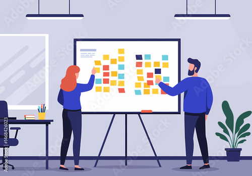 Team Collaboration Planning with Sticky Notes on Whiteboard