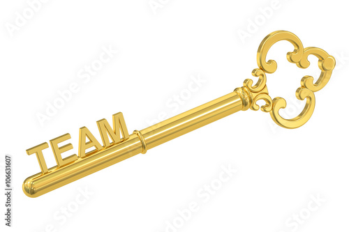 Team concept with golden key, 3D rendering