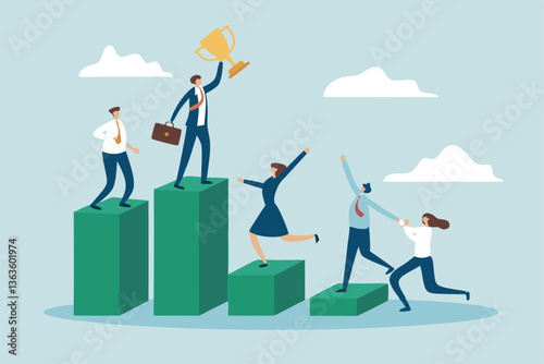 Team growth, growing business success, employee engagement, career progress, achievement or challenge, corporate ladder, motivation to win together concept, business people climb up growth graph.