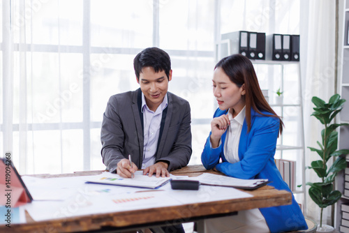 Team of Accounting business are calculating income-expenditure and analyzing real estate investment data on tablet computer, Financial and tax systems concept.
