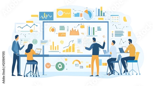Team of Managers Collaborating on Project Details Using Whiteboard in Modern Workspace