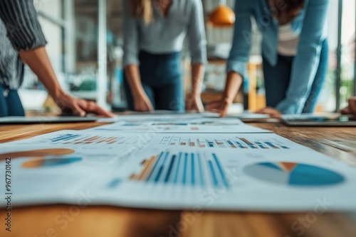 Team of professionals analyzing a business plan in a modern office setting, teamwork and collaboration concept.