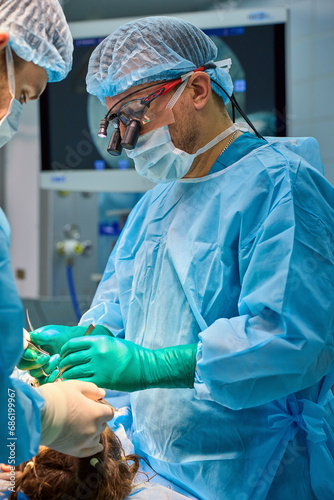 team of surgeons operate on the patient