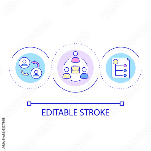 Teambuilding process loop concept icon. Productive team work in company. Communication abstract idea thin line illustration. Isolated outline drawing. Editable stroke. Arial font used