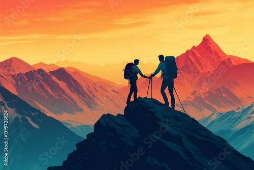 Teamwork and Adventure – Hikers Reaching Summit Together