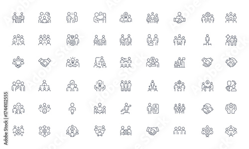 Teamwork and Business Icon Set, Corporate Collaboration, Meeting, Communication, Innovation, Partnership, Career, Planning, Recruitment, Success, Network, Leadership, Strategy, Management