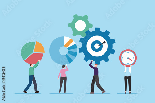 Teamwork and collaboration for business success with data analysis and goal achievement