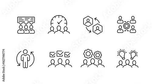 Teamwork and collaboration icons set – outline, linear, group meeting symbols