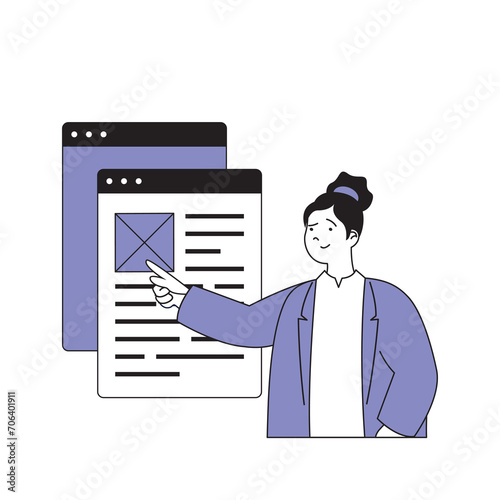 Teamwork concept with cartoon people in flat design for web. Woman working with document, consulting with colleagues in paperwork. Vector illustration for social media banner, marketing material.