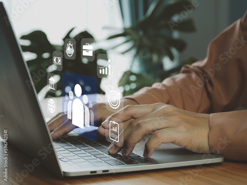 Teamwork, digital, organizational development planning to achieve goals working in a systematic way Recruitment for the organization